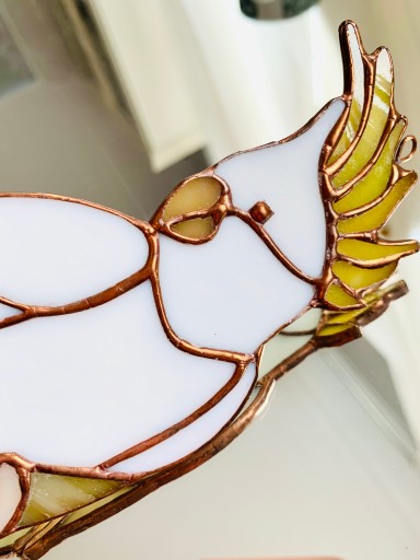 Piękna witrażowa zawieszka papuga wykonana ze szkła witrażowego najwyższej jakości metodą Tiffany. Papuga gotowy do zawieszenia.