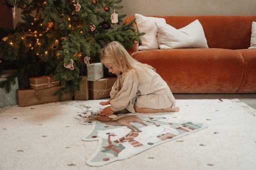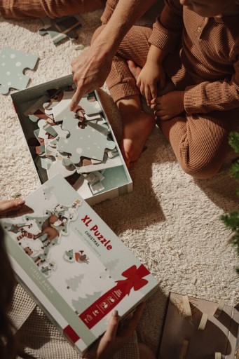X-mas Puzzle XL to układanka z cudownym motywem świątecznym, stworzona dla małych rączek, dzięki dużym elementom. Ciesz się Świętami i wspólnie z najbliższymi ułóżcie tę kolorową układankę. Usiądź na ziemi i ułóż wszystkie 35 kawałków we właściwym miejscu, aby stworzyć ogromną, świąteczną ilustrację. Obrazek przedstawia renifera, królika i ich przyjaciół zajętych dekorowaniem choinki. Świąteczna układanka XL w kształcie choinki poprawi koncentrację i koordynację wzrokowo-ruchową Twojego malucha. Puzzle zapakowane są w kartonowe pudełko, będą cudownym pomysłem na prezent dla czterolatka.