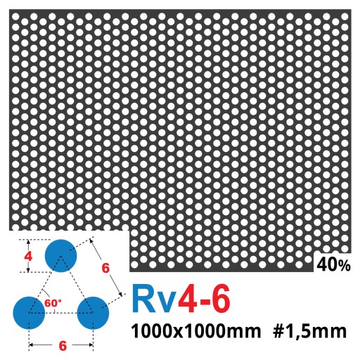 Blacha perforowana SUROWA OCZKO 4 mm PRZERWA 2 mm 1000 x 1000 mm Rv 4-6