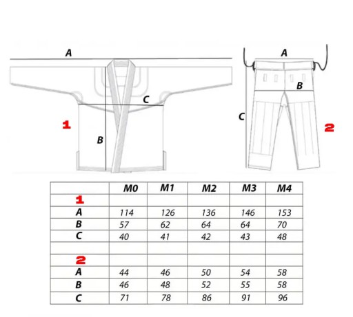 Krój kimona został dopracowany tak, aby nie krępować ruchów a jednocześnie zapewnić najwyższą wytrzymałość na rozdarcia.