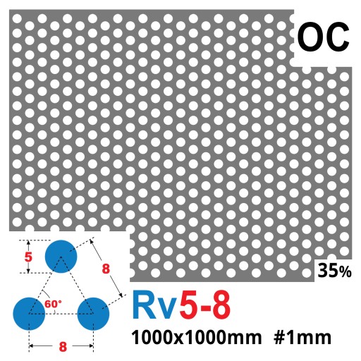 Blacha perforowana OCYNK OCZKO 5 mm PRZERWA 3 mm 1000 x 1000 mm Rv 5-8