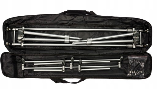 Stanowisko wędkarskie ROD POD Hokkaido na 3 wędki. Solidny stojak wykonany z duraluminium co zapewnia mu sztywność i stabilność. Rod pod posiada regulację w każdej płaszczyźnie. Bez problemu zainstalujemy go na łowisku o stromym brzegu i nierównym zboczu. Każda noga jest oddzielnie regulowana na wysokość oraz kąt pochylenia. Dodatkowo parę nóg można przesuwać w tył oraz w przód.Regulacja długości stojaka pozwala na stosowanie każdej długość wędzisk bez obawy o niekorzystne ułożenie przelotek na podpórkach. Wysokość podpórek w łatwy sposób można wyregulować za pomocą solidnych śrub zaciskowych. Znormalizowany gwint pozwala na montaż większości sygnalizatorów elektronicznych i analogowych. Cały zestaw zapakowany jest w poręczną torbę która ułatwia transport oraz przechowywanie stojaka.