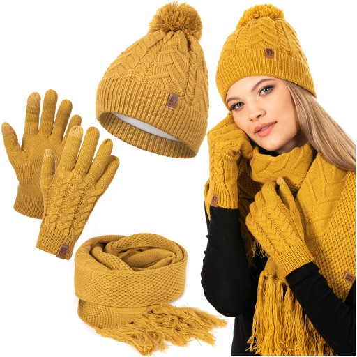 ЖЕНСКАЯ ЗИМНЯЯ ШАПКА, ШАРФ, КОМПЛЕКТ СЕНСОРНЫХ ПЕРЧАТОК С ШАРФОМ ПОМПОНОМ
