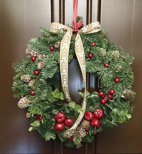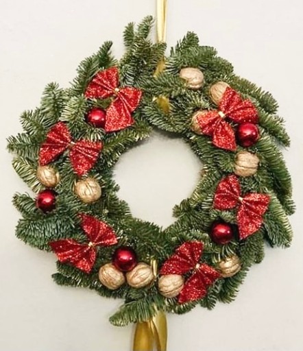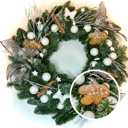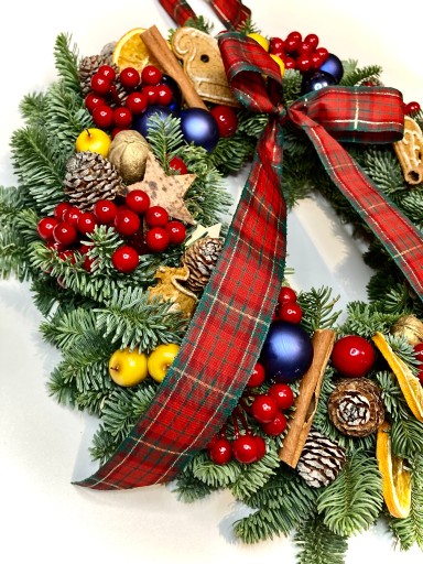 Wianek bożonarodzeniowy na drzwi stroik ŻYWY jodła