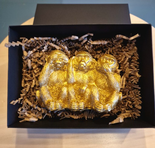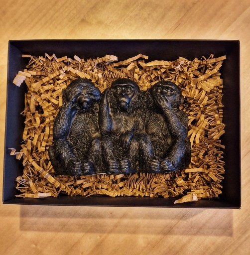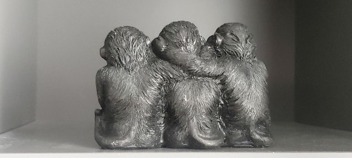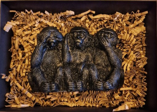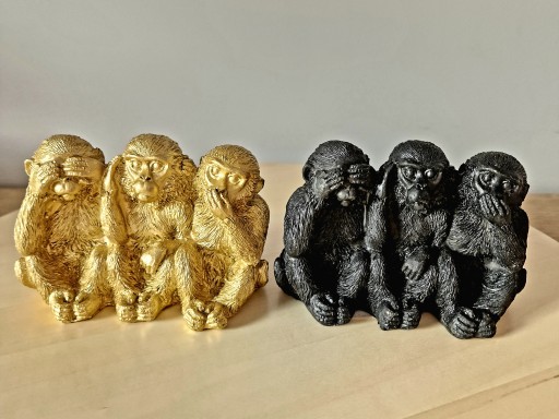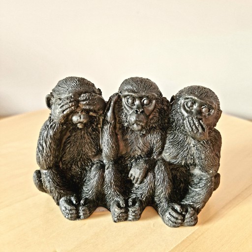 Figurka przedstawia stare chińskie przysłowie: Nie widzę nic złego, nie słyszę nic złego, nie mówię nic złego.
