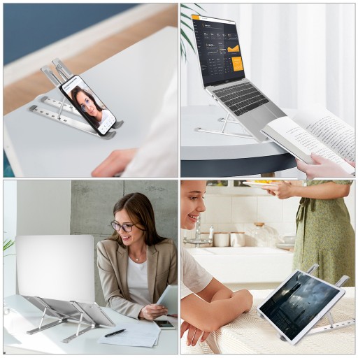 Dzięki składanej konstrukcji możesz zabrać stojak ze sobą wszędzie. Niezależnie od tego, czy jesteś w podróży służbowej, na spotkaniu czy w kawiarni, możesz z łatwością wyciągnąć nasz stojak, rozłożyć go i cieszyć się wygodą korzystania z laptopa, tabletu czy innego urządzenia.