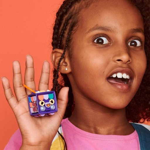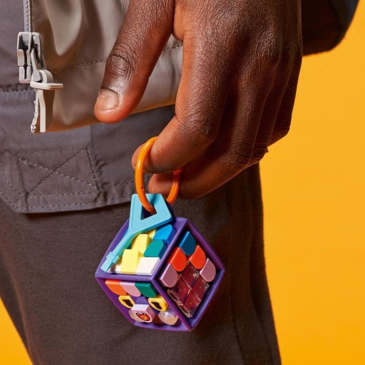 Wyrażanie siebie na dowolne sposoby Ten praktyczny zestaw do rękodzieła zawiera kostkę, którą można ozdabiać płytkami na różne sposoby, kółko do zawieszenia jej oraz separator płytek. W komplecie są fioletowe, niebieskie, zielononiebieskie i różowe płytki do zaprojektowania niepowtarzalnego smoka, a woreczek Dodatki DOTS — seria 4 (41931, sprzedawany osobno) z dodatkowymi płytkami pozwoli projektować jeszcze więcej kreatywnych buziek i wzorów.