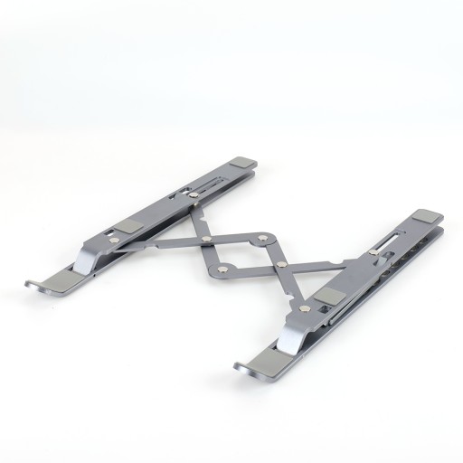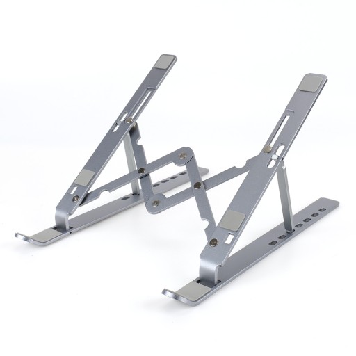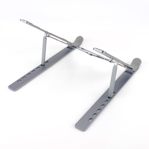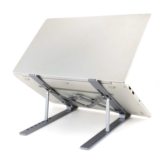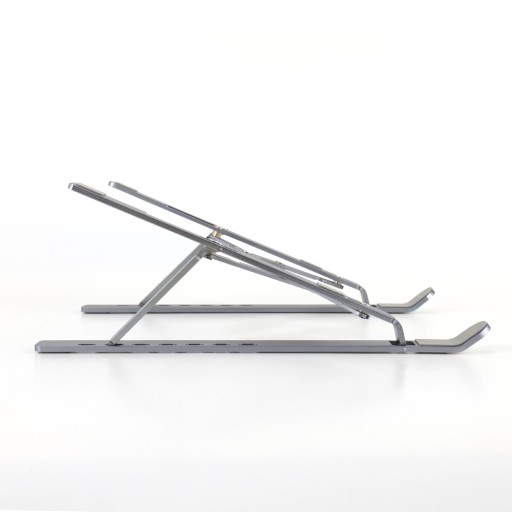 Nasz stojak jest wyjątkowo praktyczny, ponieważ można go łatwo składać, co sprawia, że zajmuje bardzo mało miejsca. Po złożeniu stojak ma niewielkie gabaryty, co pozwala na łatwe przechowywanie go w dowolnej szufladzie czy torbie na laptopa.