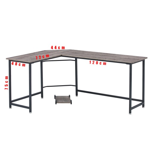 Jest to model narożny co pozwala na ustawienie go nawet w niewielkich pomieszczeniach maksymalnie wykorzystując przestrzeń. Składa się z 2 części. Jedna o długości 120cm i druga również o długości 120cm ze ściętym rogiem. Duża powierzchnia robocza pozwala nie tylko ustawić monitor lub laptopa, ale i dokumenty oraz akcesoria biurowe.