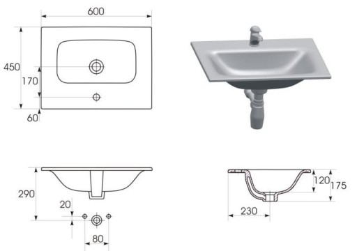 Umywalka ceramiczna wpuszczana w blat Moduo 60 cm