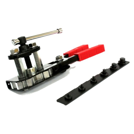 Przyrząd składa się z prasy z zamkiem szybko-blokującym, listwy z formami do przewodów o rozmiarze 5-16 mm (3/16" - 5/8"), stożka formującego oraz modułów blokujących.