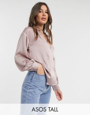 TALL KOSZULA SATYNOWA RÓŻOWA NA GUZIKI
