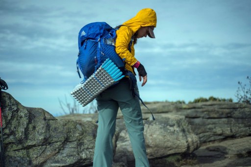 Segmenty nie są płaskie – ułożono je w formie fal – tworzą naprzemiennie występujące górki i dołki. Taka budowa zwiększa izolacyjność maty.Z-Lite nie ślizga się po podłożu, a śpiwór po macie. Matę się składa, nie zwija, co pozwala ją pakować na różne sposoby. Istnieje możliwość odcięcia kawałka i wykorzystanie go np. Istnieje możliwość odcięcia kawałka i wykorzystanie go np.