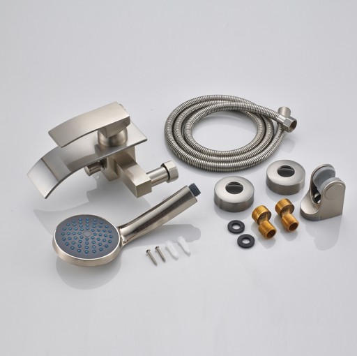 Stylowy i nowoczesny zestaw z baterią, wylewką i słuchawką prysznicową