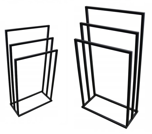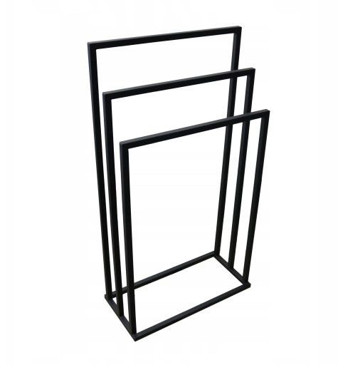 Prezentujemy piękny metalowy stojak na ręczniki w czarnym kolorze. Wykonany jest ze stali malowanej proszkowo, dzięki czemu jest odporny na wilgoć.