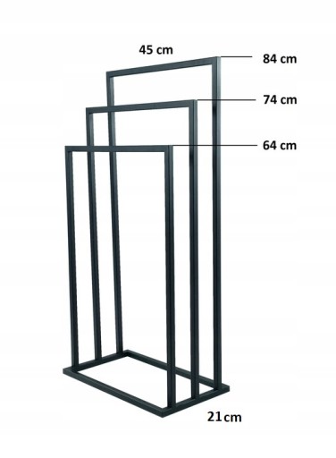Stojak posiada trzy ramiona umieszczone na różnych wysokościach, na których możesz zawiesić ręczniki o odmiennej długości. Przestrzenie między ramionami sprawiają, że ręczniki szybciej się szuszą.