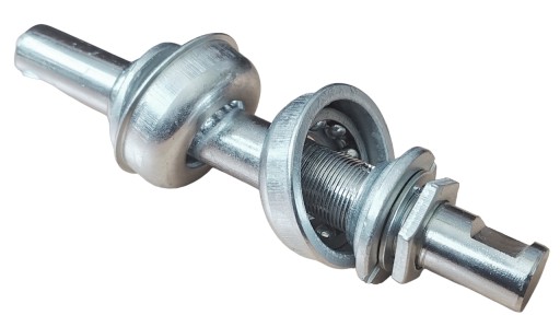 OŚ ROWEROWA MECHANIZMU KORBOWEGO NA KLIN (KOMPLET Z MISKAMI I ŁOŻYSKAMI)