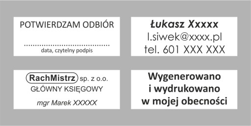 Przykładowe ułożenie tekstu na pieczątce.