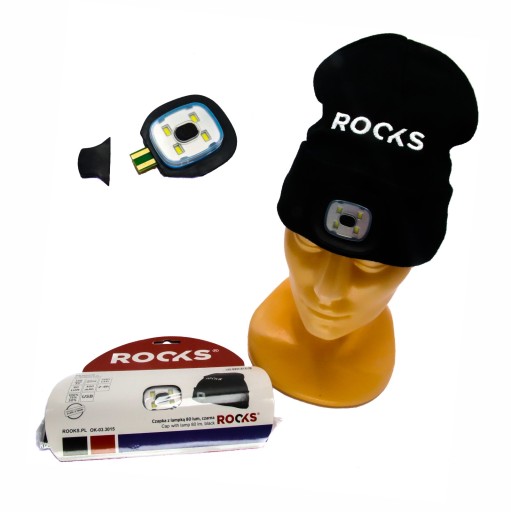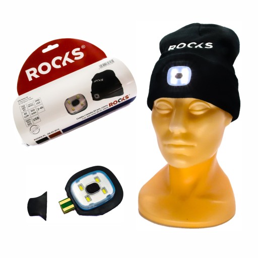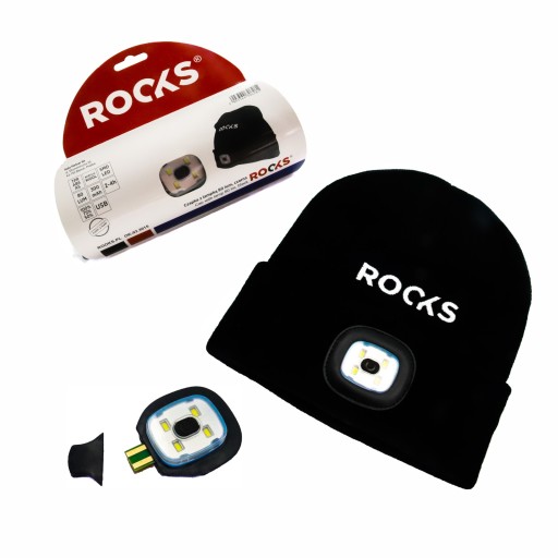 CZAPKA Z LATARKĄ LED USB CIEPŁA CZARNA ROOKS