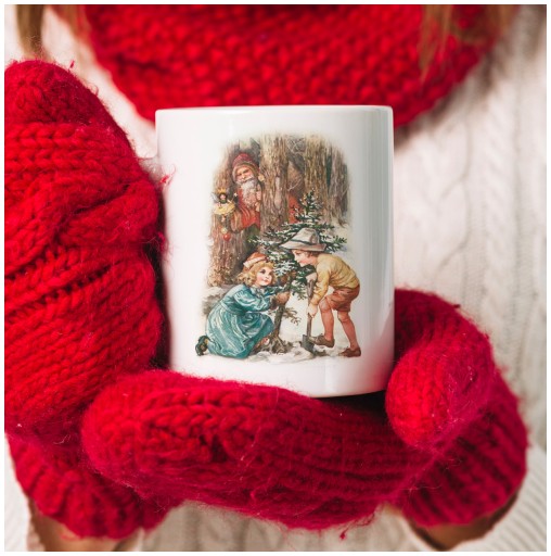 Świąteczny kubeczek z dziećmi i Mikołajem - vintage! Idealny prezent na Mikołaja i Boże Narodzenie.