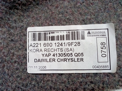 Opis: -jakość A && MERCEDES S W221 TAPICERKA BAGAŻNIKA PRAWA