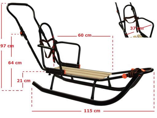 POLSKIE SUPER SANKI Z OPARCIEM, REGULOWANYM PROWADNIKIEM - PCHACZEM, regulowaną budką oraz DŁUGIM POLAROWYM ŚPIWORKIEM LUX ORAZ KÓŁKAMI