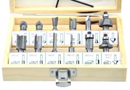 Zestaw 12 frezów kształtowych do drewna pozwalające na precyzyjną obróbkę materiału. Ostrza frezów wykonane są ze stali szybkotnącej HSS co sprawia, że narzędzia te mogą być stosowane do obróbki drewna litego, płyty wiórowej, MDF i innych materiałów drewnopochodnych. Zastosowane łożyska, zmniejszają opór toczenia, dlatego frezy idealnie nadają się do kształtowania obłych materiałów. Całość w praktycznej drewnianej walizce, gdzie każdy frez ma swoje podpisane miejsce.