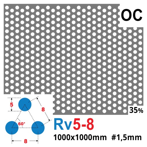 Blacha perforowana OCYNK OCZKO 5 mm PRZERWA 3 mm 1000 x 1000 mm Rv 5-8
