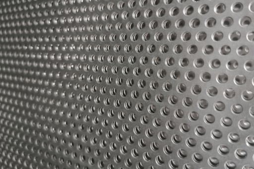 Blacha perforowana ocynkowana (ocynk ogniowy srebrny) z oczkami okrągłymi w układzie mijanym.