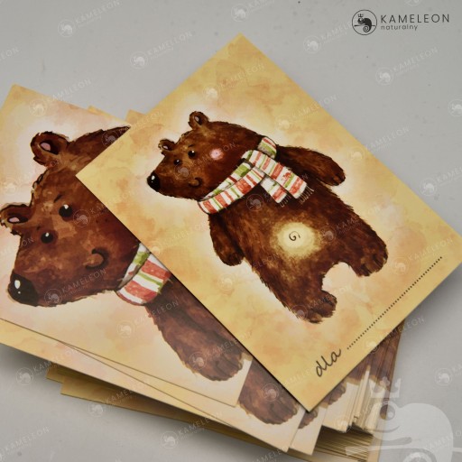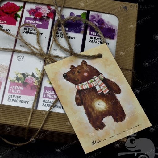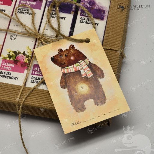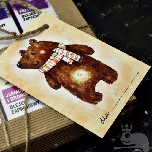 BILECIK MIŚ stworzony został z myślą o dołączeniu do zestawów prezentowych (z kawami, herbatami, mydełkami, olejkami), które sprzedajemy na innych naszych aukcjach.