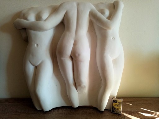 Płaskorzeźba, panel dekoracyjny "Gracje", naturalnie biały, surowy, wykonany z gipsu.