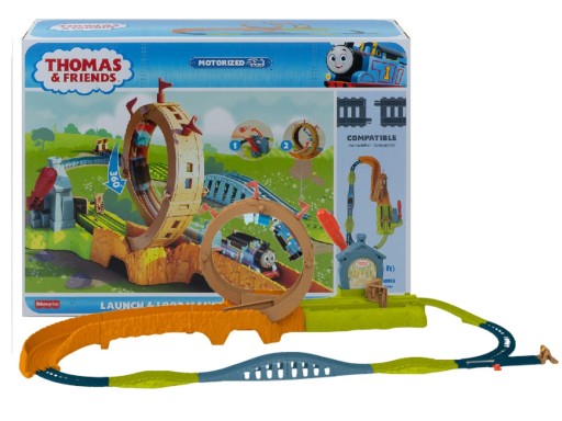 Mali kolejarze mogą mknąć przez pętlę i wyboisty tor w zestawie Tomek i Przyjaciele Epicka pętla – Plac remontowy od Fisher-Price®.