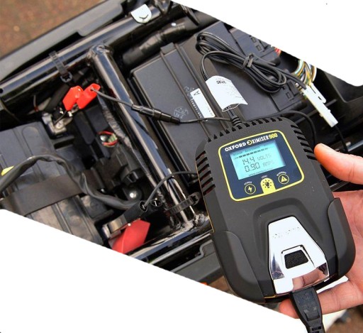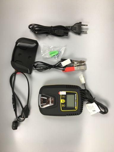 Uniwersalna ładowarka do akumulatorów motocyklowych o mocy od 1.2 do 30Ah. Obsługuje wszystkie typy akumulatórów (Wet, MF, AGM i GEL), posiada też zabezpieczenia przez zwarciem, zetknięciem przewodów ładujących czy niepoprawnym podłączeniem przewodów do akumulatora.