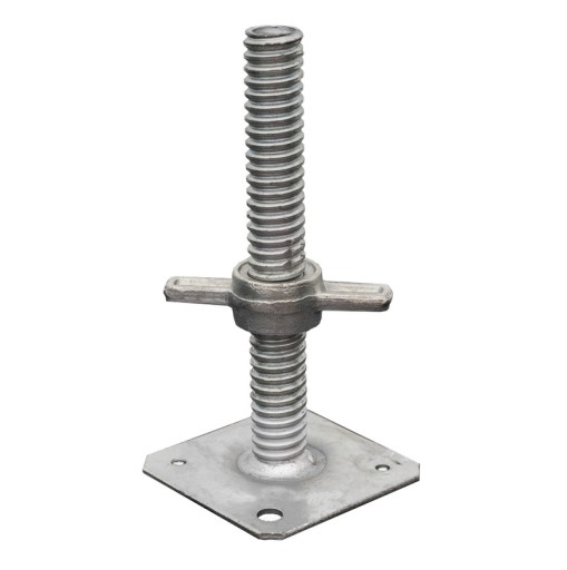 Średnica trzpienia 38mm. Produkt jest uniwersalny, pasuje do rusztowań typu Plettac. Stopa wykonana z ocynkowanej stali.