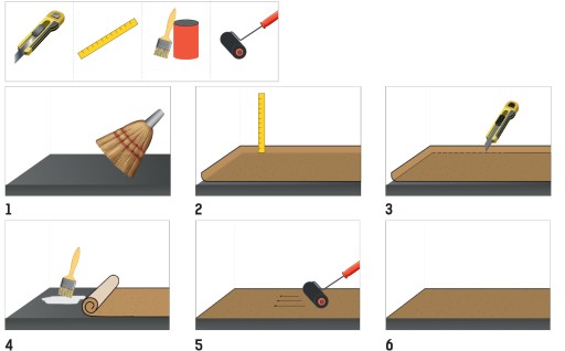 Za pomocą gumowego wałka dociśnij wykładzinę do podłoża (od środka do zewnątrz)