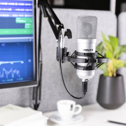 Tytanowy mikrofon studyjny USB z ramieniem Vonyx CMS300S
