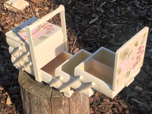 Przedstawiam piękną, drewnianą szkatułkę na nici.