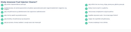 Regularne sięganie po TEC 2000 Fuel Injector Cleaner (co najmniej 2 razy w ciągu roku) pozwoli zmniejszyć lub całkowicie pozbyć się zbierania wilgoci wokół wtryskiwaczy. Co więcej, preparat do wtrysków benzynowych zapewnia czystość w cylindrach, a także przeciwdziała częściowemu blokowaniu wtryskiwaczy. Dodatkowo wpłynie na mniejsze zużycie cylindrów, zniweluje zbieranie się osadów w katalizatorze, pozbędzie się nieprzyjemnego zapachu zgniłych jaj, które pochodzą od osadów.