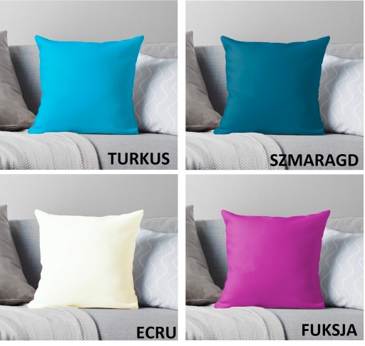 Poszewki wykonane z tkaniny gładkiej i matowej dlatego bardzo ładnie prezentują się w salach ze słabym jak też mocnym oświetleniem. Bardzo bogata kolorystyka, bardzo długo zachowują głębie koloru - nawet po kilkunastu praniach. Tkanina odporna na mocne zagniecenia.