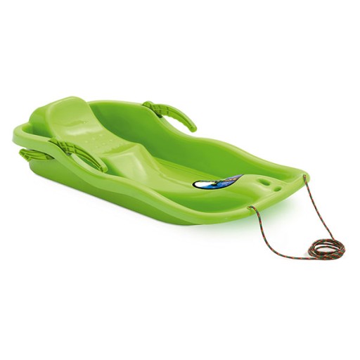 Głębokie sanki wykonane są z wysokiej jakości, mrozoodpornego tworzywa sztucznego co sprawia, że jest to produkt na wiele sezonów. Lekka plastikowa konstrukcja ułatwia transport i ułatwia czyszczenie po zakończonej zabawie. Sanki posiadają wyprofilowane siedzenie oraz ruchome dźwignie do hamowania i sterowania, dzięki czemu zjazd będzie w pełni komfortowy i bezpieczny! Dodatkowo w komplecie znajduje się kolorowa linka, ułatwiająca ciągnięcie.