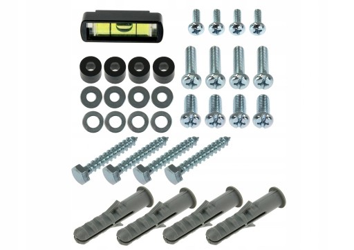 ✅ Zestaw zawiera wszystkie niezbędne śruby, podkładki dystansowe oraz kołki montażowe, które umożliwiają umocowanie go do ściany.