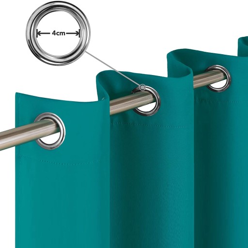 Gotowa zasłona na przelotkach, kółkach. Bardzo wysoka jakość tkaniny. Przelotki metalowe średnica wewnętrzna ok 40 mm natomiast na zewnątrz około 70 mm. Bardzo ładne żywe kolory, które nie ulegają spraniu zachowując kolor na bardzo długi okres użytkowania. Bardzo starannie uszyta. Taśma usztywniająca pod oczka podwójnie przeszyta. Zasłony pakowane w opakowanie foliowe. Każda zasłona posiada metkę producenta wraz z przepisem użytkowania, prania. Bardzo bogata kolorystyka sprawi iż każdy znajdzie swój kolor.
