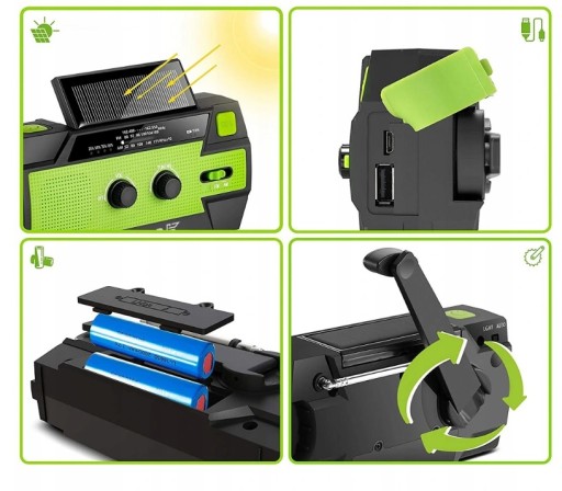 - Awaryjne radio Feegar OZE 2 PRO ma wbudowaną baterię o pojemności 4000 mAh, którą można jeszcze ładować poprzez panel solarny oraz korbę dynamo. Świetnie sprawdzi się to w ustronnych i cichych miejscach, w których nie ma gniazdka w pobliżu. Dodatkowo można je zasilać radio za pomocą wymiennych baterii 18650 lub poprzez kabel USB dołączony do opakowania.