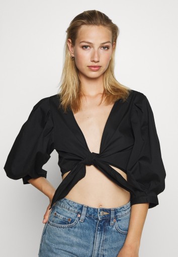 КОРОТКАЯ ЖЕНСКАЯ ГЛАДКАЯ ЧЕРНАЯ БЛУЗКА НА ЗАВЯЗКЕ M VAF
