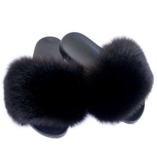 Modne klapki z futrem wykonane z lekkiego tworzywa sztucznego.