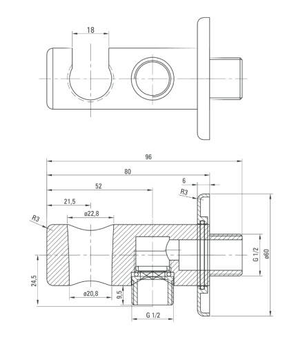 ..............................Przyłącze kątowe węża natrysku z uchwytem na słuchawkę - okrągłe.......................
