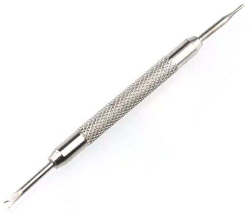 Stalowe końcówki-widełki oraz wybijak pozwalające na demontaż pasków i bransolet. Wymiana paska, bransolety, zapięcia - z tym narzędziem nie będzie stanowiło większego problemu.