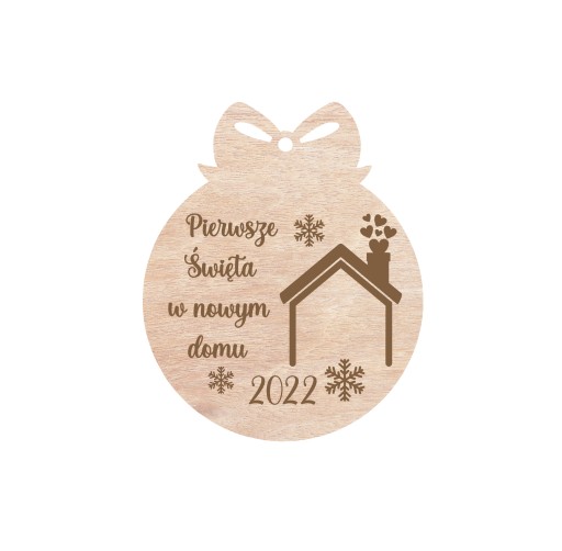 Bombka „Pierwsze Święta w nowym domu” wykonana ze sklejki, sprawdzi się idealnie jako pamiątka.