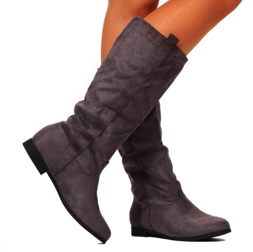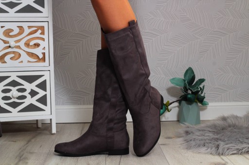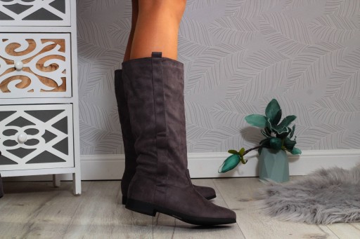 Gładkie, wsuwane kozaki damskie w kolorze szarym. Posiadają delikatne ocieplenie w postaci delikatnego futerka. 🔥 Idealne na chłodniejszą porę.🍁 Stabilna, płaska podeszwa, dobrze amortyzuje stopę. Najnowsza kolekcja 2022! 💯