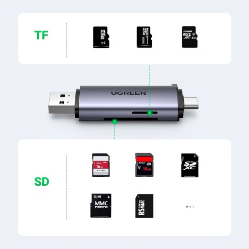 UGREEN CZYTNIK KART ADAPTER USB 3.0 USB-C SD microSD SDHC TF Plug&Play